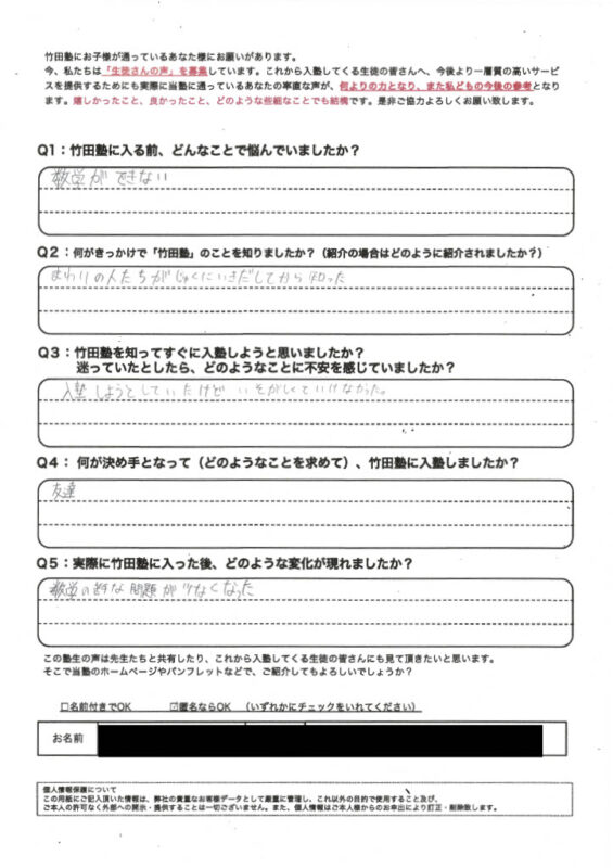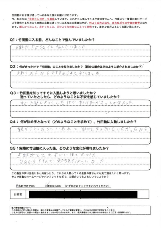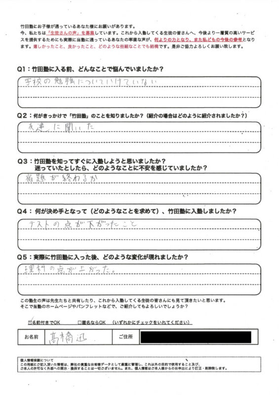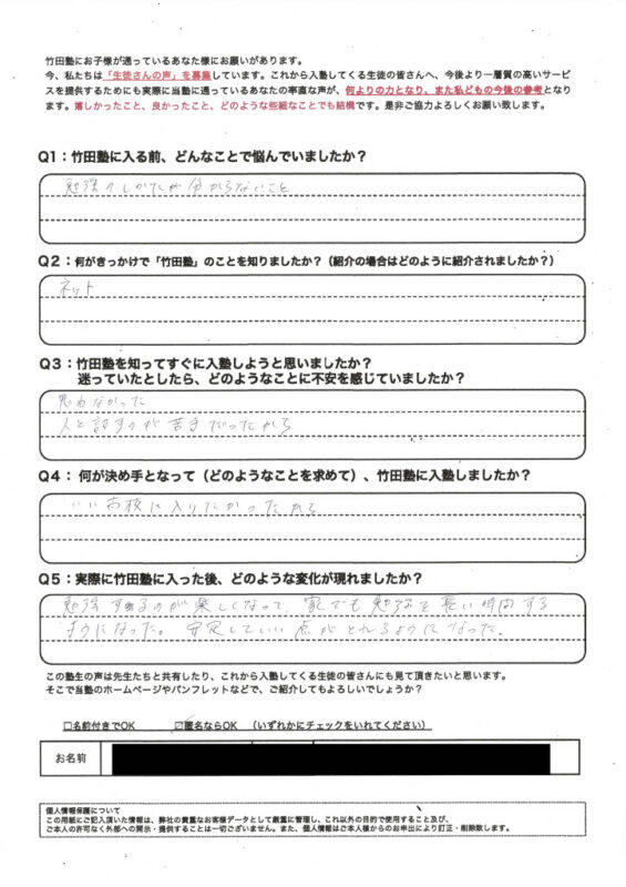 生徒・保護者の声
